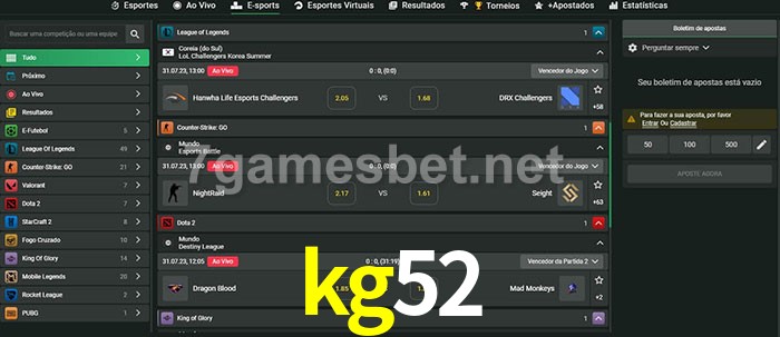 O kg52 oferece uma grande seleção de opções de apostas em e-sports com probabilidades competitivas